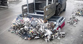 Recycling: Plastik, Papier, Glasscherben und Metallschrott fegen.